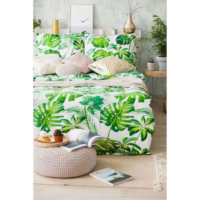 Постельное бельё «Этель» 1,5 сп., Монстера, размер 143×215 см, 150×214 см, 70×70 см — 2 шт