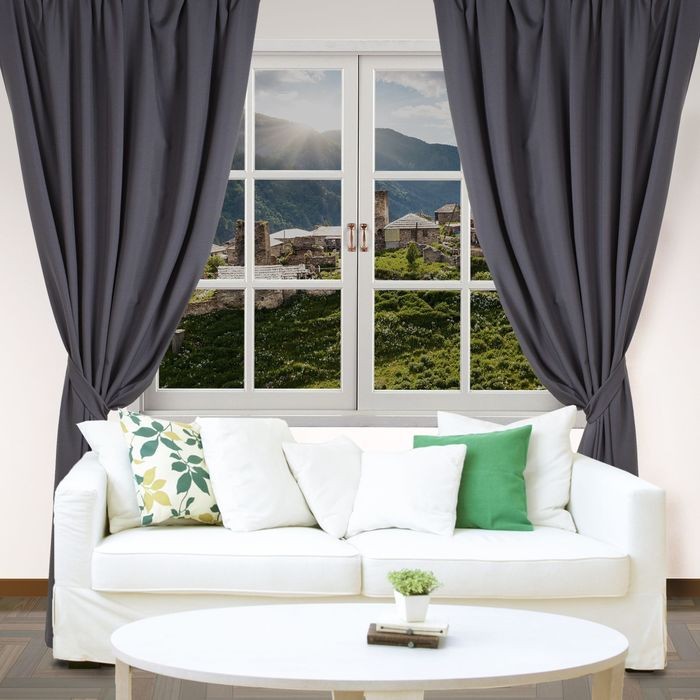 Портьерная штора пошита из жатой ткани — крэш. Этот материал:
