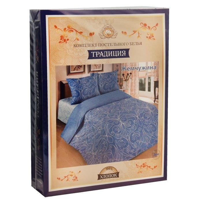 Постельное бельё 2 сп"Традиция: Жемчужина», цвет голубой, 175×217, 180×220, 70х70см — 2 шт