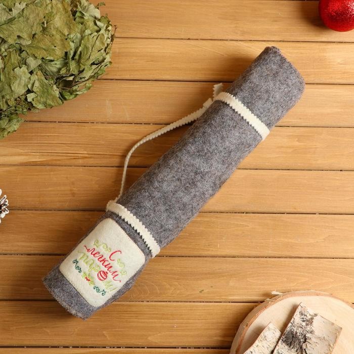 Банный коврик-лежак из войлока с оригинальной вышивкой отлично впитывает влагу и защищает тело от жара полок. Аксессуар выполняет также и гигиеническую функцию, что немаловажно при походах в общественные заведения. Лежак пригодится поклонникам классической русской бани и тем, кто предпочитает сухой жар финской сауны.