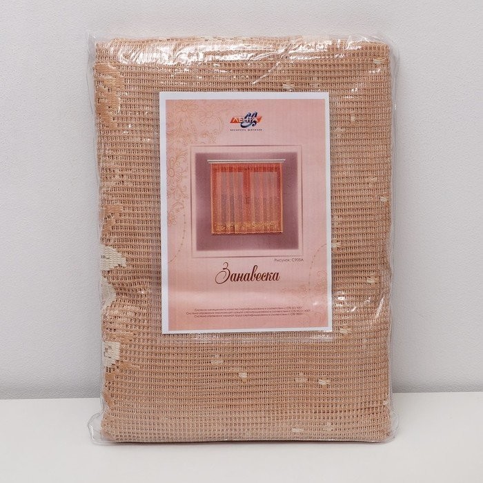 Тюль кухонная на шторной ленте 235×160 см, цв.беж.с, арт.р.С905