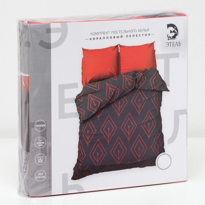 Постельное бельё «Этель» дуэт Коралловый лепесток 143×215 см — 2 шт., 240*220 см, 70×70 см — 2 шт., поплин 125 г/м²