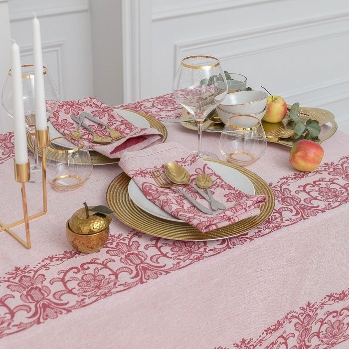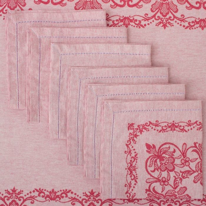 Столовый набор «Этель» (скатерть 150×250 см, салфетки 45×45 см — 8 шт.) цвет бордо, хл. с ВМГО