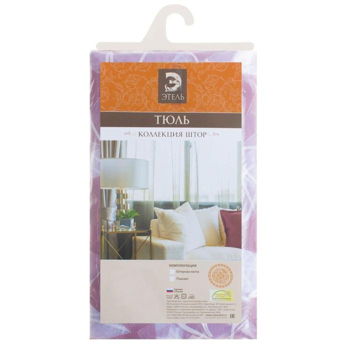 Тюль «Этель» Абстракция (цвет лиловый) без утяжелителя, ширина 135 см, высота 270 см