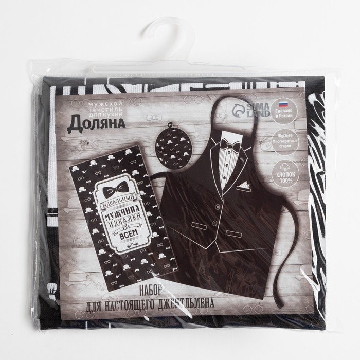 Кухонный набор 3 пр. «Джентльмен», фартук 60×70 см, прихватка 20×20 см, полотенце 35×60 см