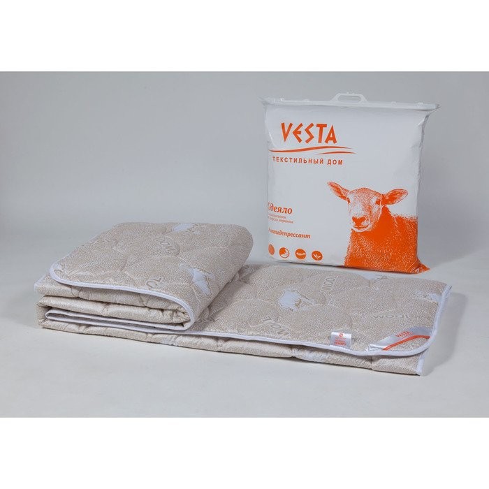 Одеяло зимнее 172×205 см, шерсть мериноса, ткань глосс-сатин, п/э 100%