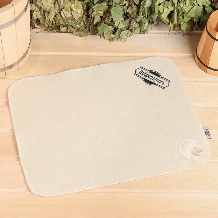 Коврик для бани и сауны, белый с черной вышивкой «ДОБРОПАРОВЪ», 45×35 см