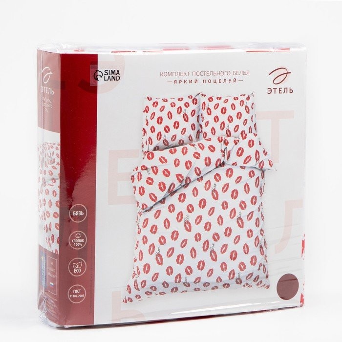Постельное бельё «Этель» 2 сп. Яркий поцелуй175×215 см, 200×220 см, 70×70 см — 2 шт., 100% хлопок, бязь 125 г/м²