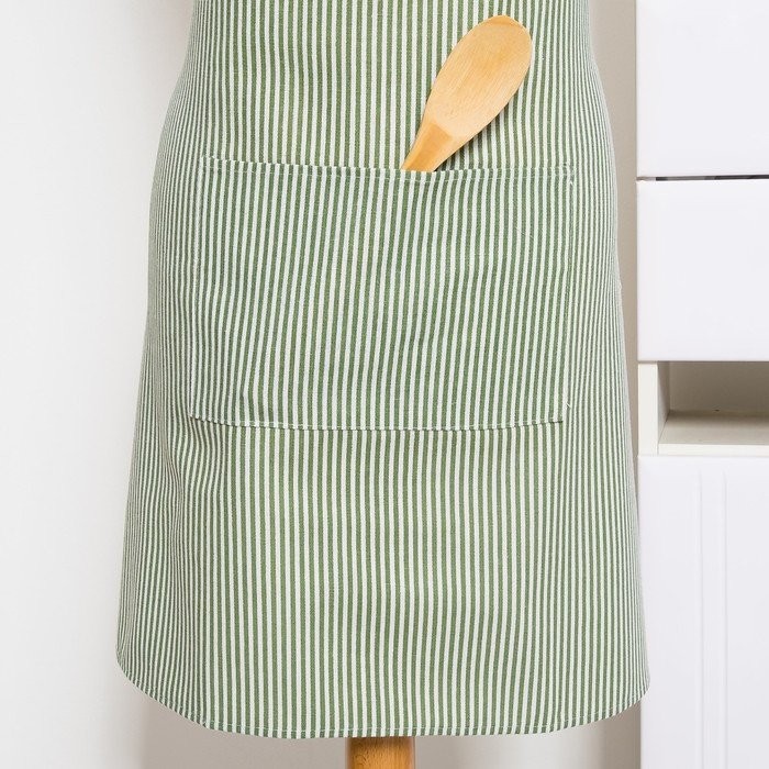 Набор Доляна фартук/прихватка/варежка, Зеленая полоска, 100%пэ, рогожка 200 гр/м