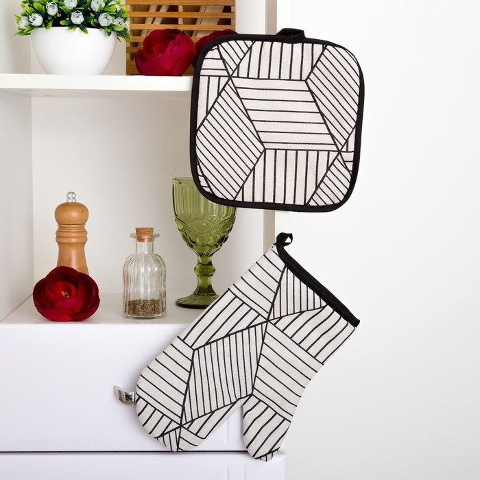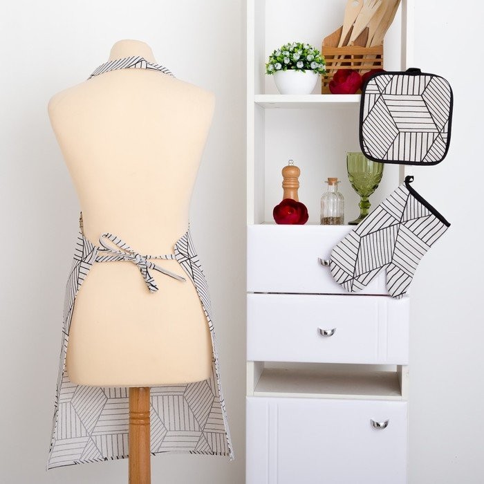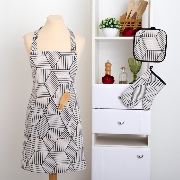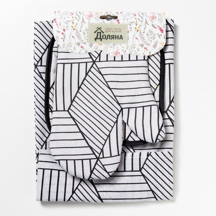 Набор Доляна фартук/прихватка/варежка, Тренд бел, 100%пэ, рогожка 200 гр/м