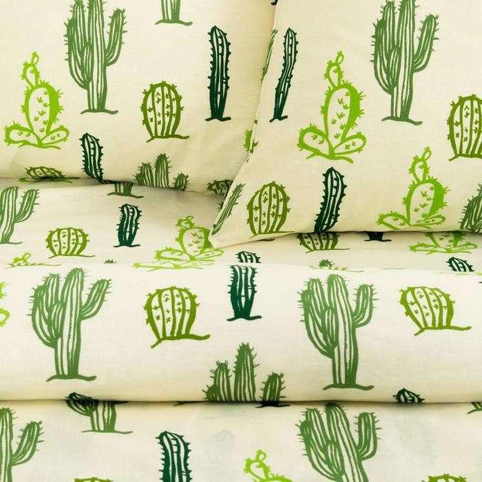 Постельное бельё «Этель» евро Кактусы 200×217 см, 240*220 см, 70×70 см — 2 шт., 100% хл, бязь 125 г/м²