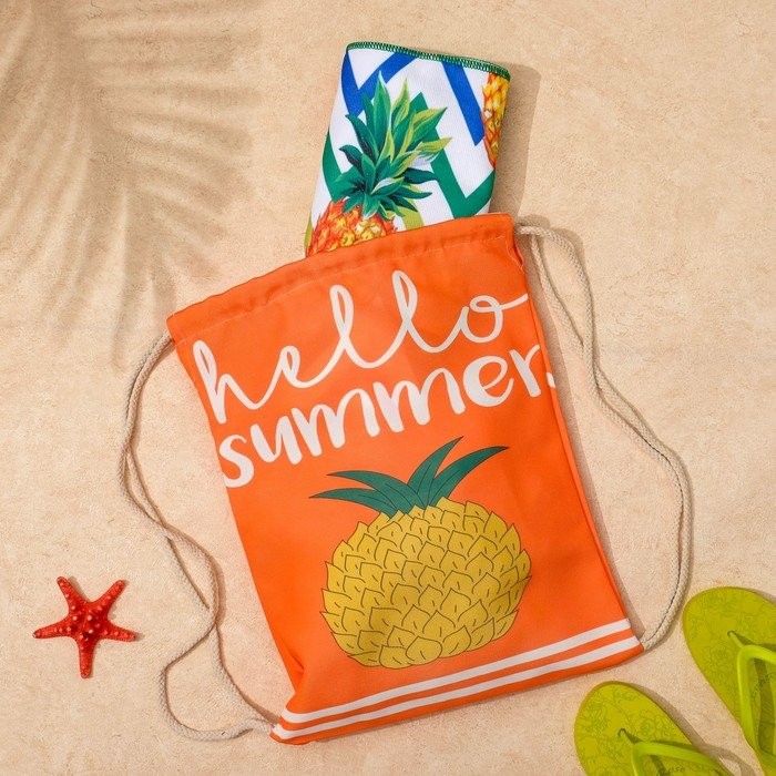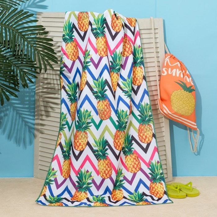 Полотенце пляжное в сумке Этель «Ананасы», 70*140 см, микрофибра, 100% п/э