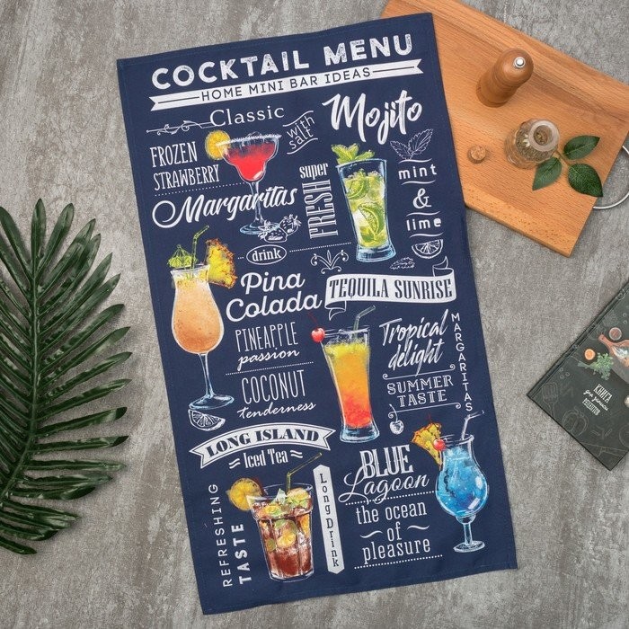 Полотенце «Этель» Cocktail menu 40×73 см, 100% хл, саржа 190 гр/м2