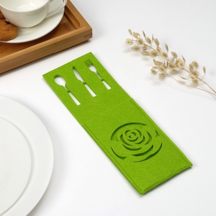 Конверт для столовых приборов Доляна «Роза» цвет зелёный, 9×25 см