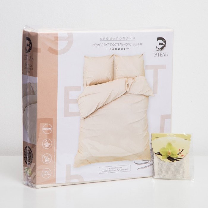 Постельное бельё «Этель: Арома поплин», 2-сп., 180 × 210 см, 200 × 220 см, 50 × 70 см (2 шт.), ваниль, 125 г/м², 100%-ный хлопок