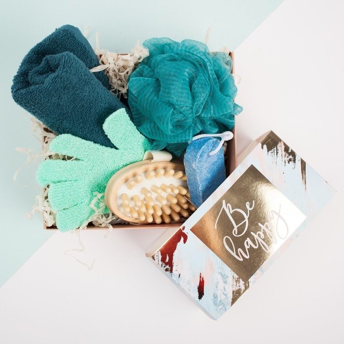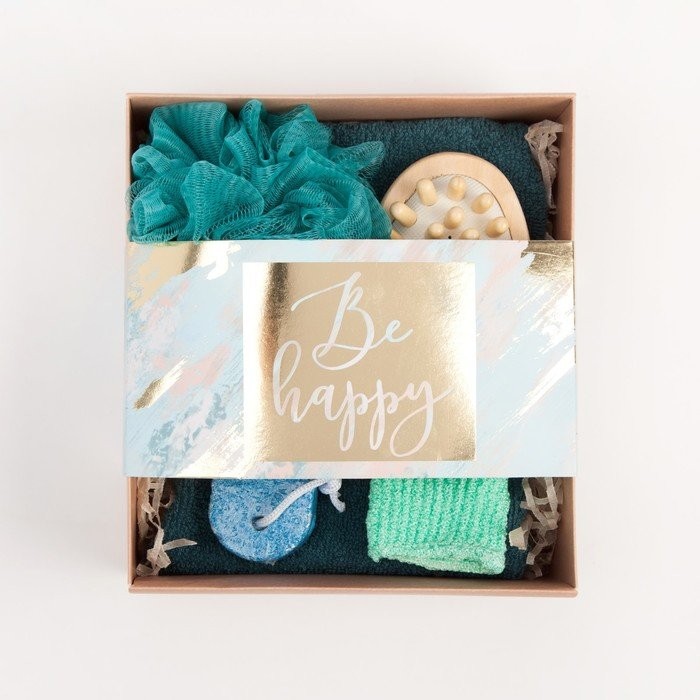 Подарочный набор «Be happy» полотенце 30×60 см и банные аксессуары