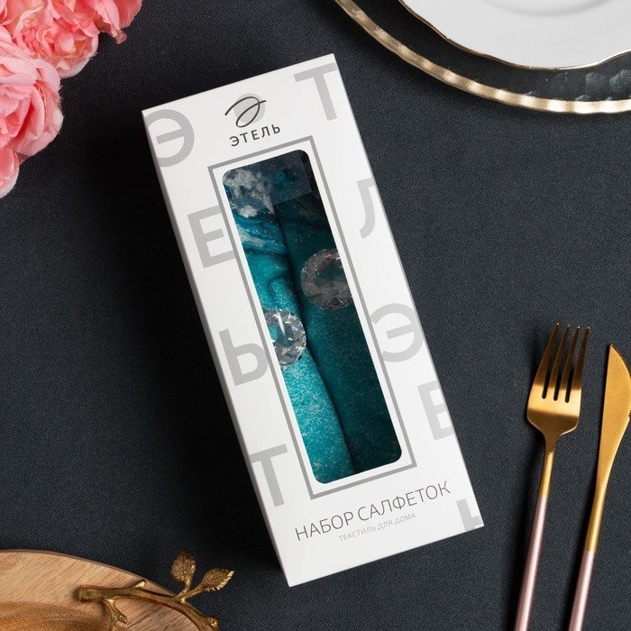 Набор салфеток с декорат. кольцами «Бирюза» 46×46 см — 2 шт, 100% хл, саржа 190гр/м2