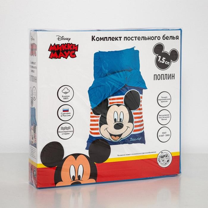 Постельное бельё 1,5 сп «Микки Маус» 143×215 см, 150×214 см, 50×70 см -1 шт., поплин 125 г/м2