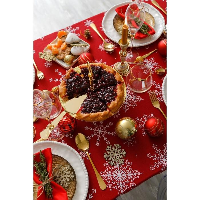 Скатерть Доляна «Новый год: Белые снежинки» 110×149 см, 100% хлопок, 164 г/м2