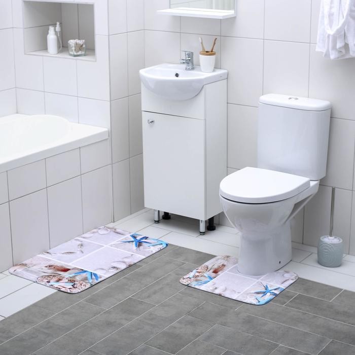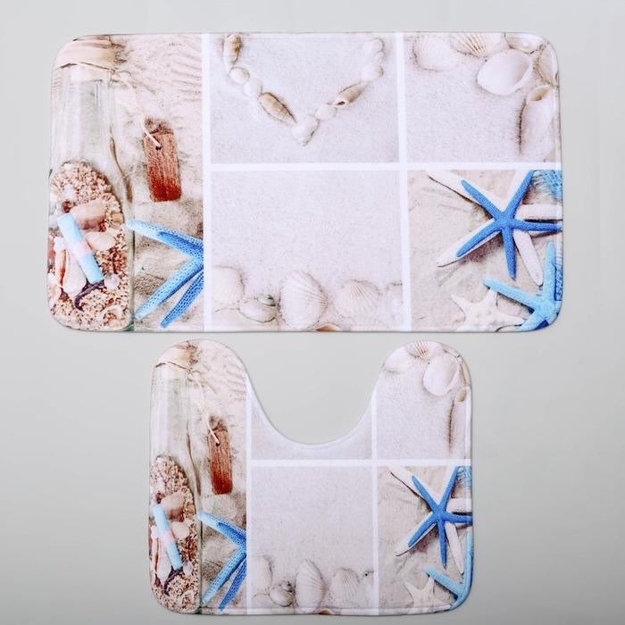 Набор ковриков для ванны и туалета Доляна «Морская бутыль», 2 шт: 40×45, 45×75 см