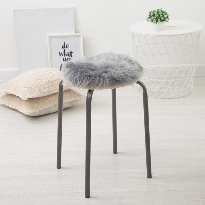 Сидушка на стул меховая Доляна «Пушинка» цв.серый d 30 cm,100% п/э