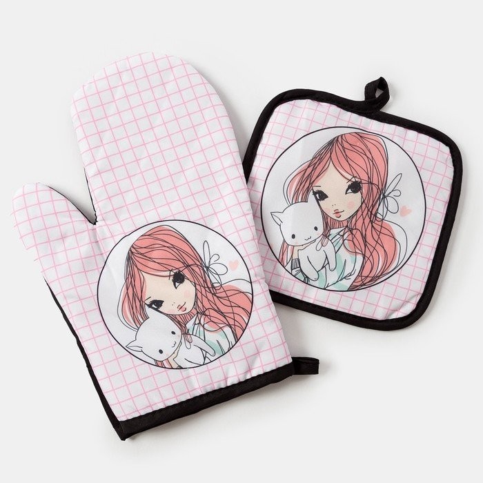 Кухонный набор (2 предмета) Этель LoveLife «Лея», прихватка 17×17 см, рукавичка 26×16 см, 100% п/э