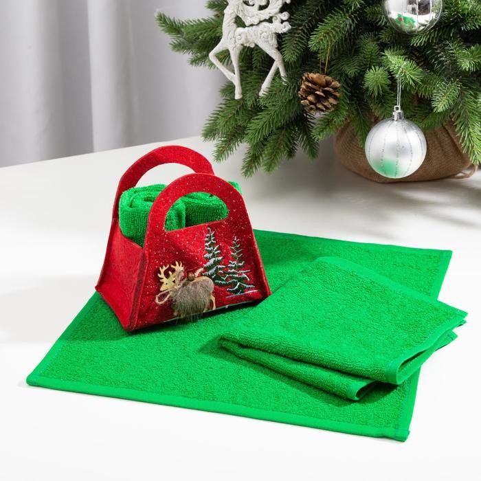 Набор полотенец в корзинке Этель «Новый Год» 30×30 см-2 шт