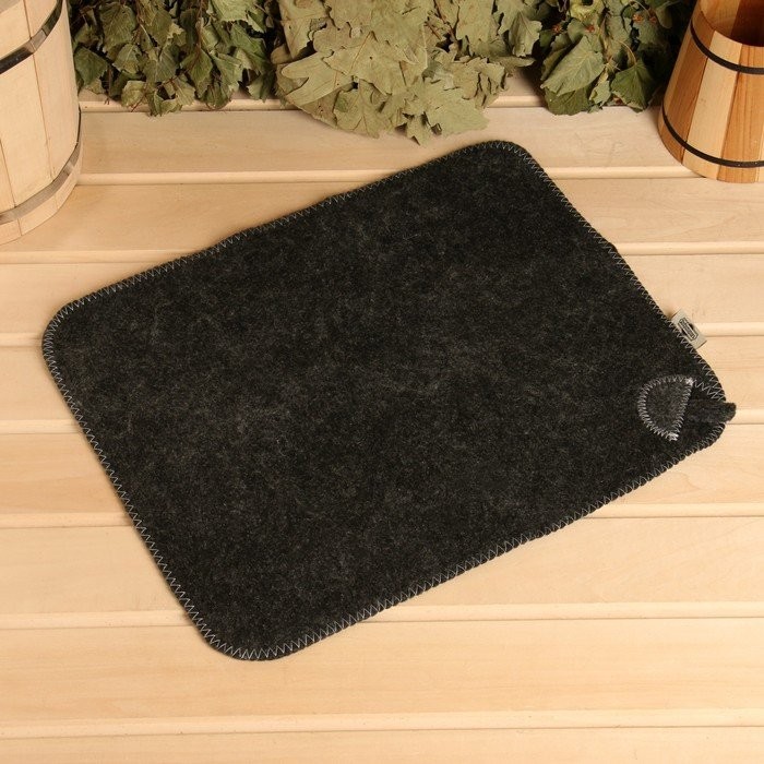 Тапочки из войлока и коврик впитывают влагу и сохраняют сухость, что обеспечивает комфорт во время посещения парной.