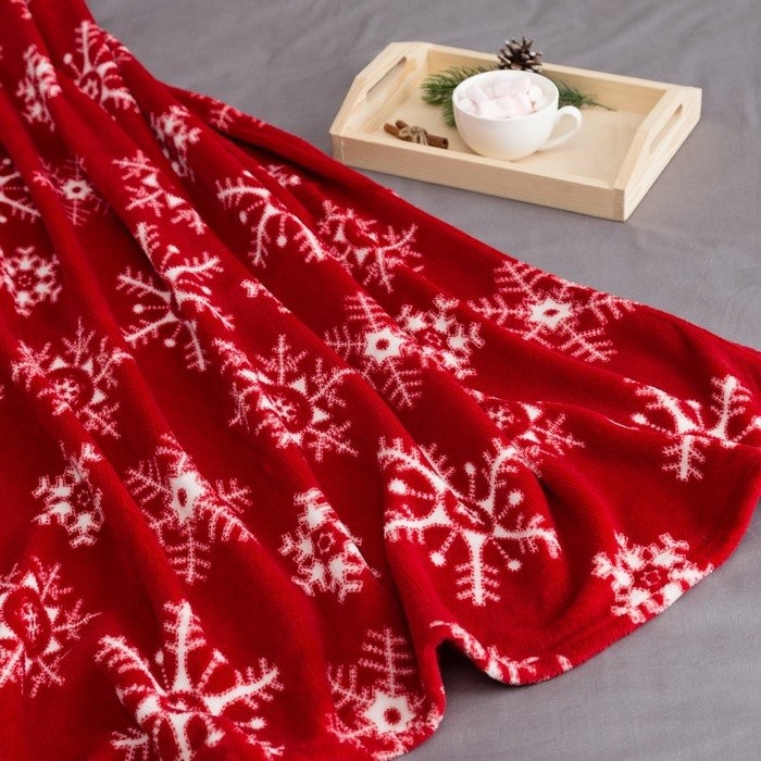 Плед Этель «Снежинки», 180×200 см, корал-флис