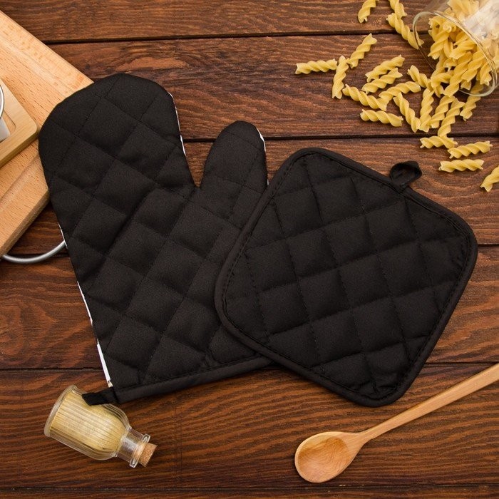 Кухонный набор (2 предмета) Этель LoveLife Happy, прихватка 17×17 см, рукавичка 26×16 см, 100% п/э