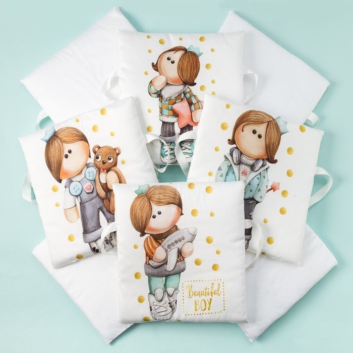 Бортики в кроватку Крошка Я «Принц Тим», цвет белый, 35×35 см-8 шт, сатин