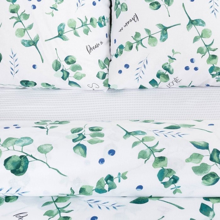 Постельное бельё «Этель» дуэт Листья эвкалипта 143*215 см 2 шт,240*220 см,70*70 см 2 шт