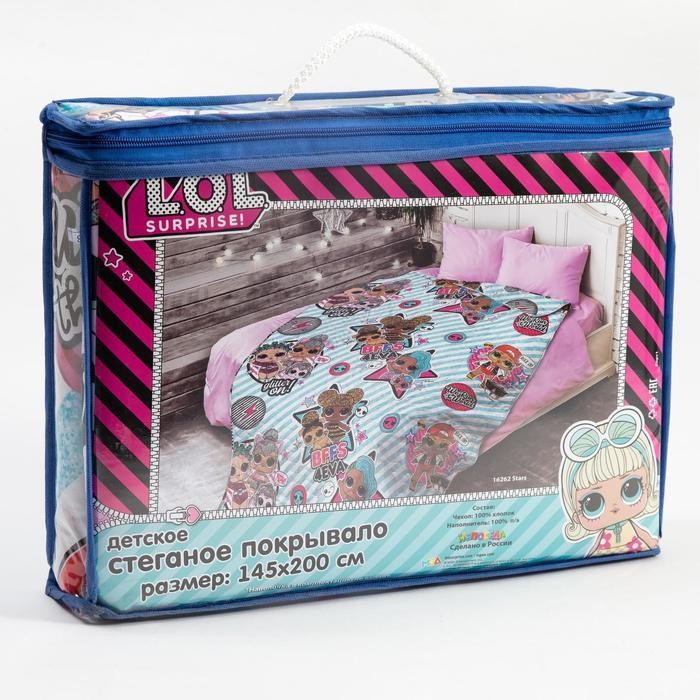 Покрывало стеганое Непоседа L.O.L.Surprise Stars 145х200см поплин 105 гм хл100%