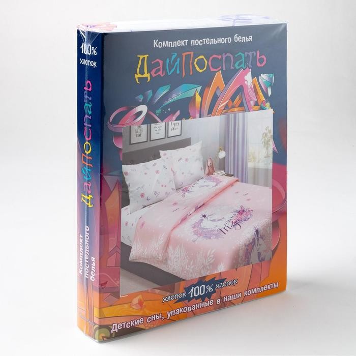 Постельное бельё 1,5сп «Дай поспать» Единорог, розовый 147×217, 150×220, 70х70см — 2 шт