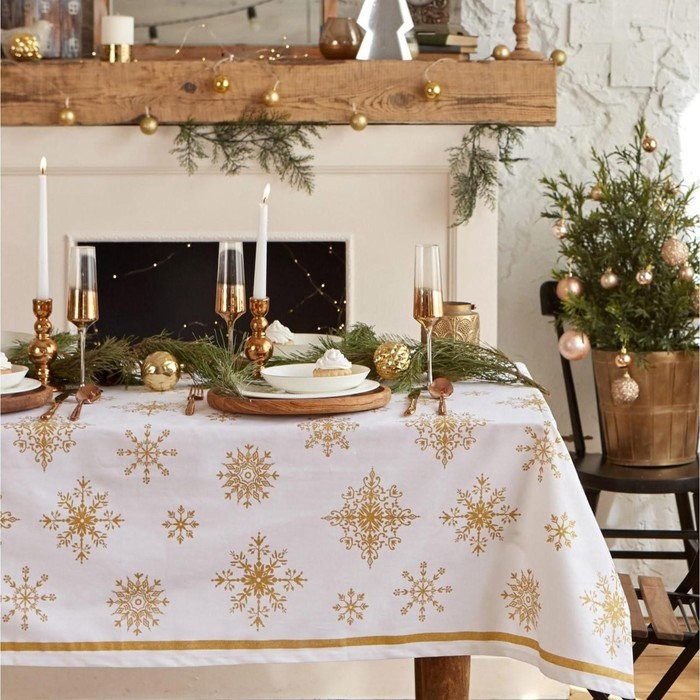 Скатерть «Этель» Золотые снежинки 149х180см, 100%хл, 190г/м2
