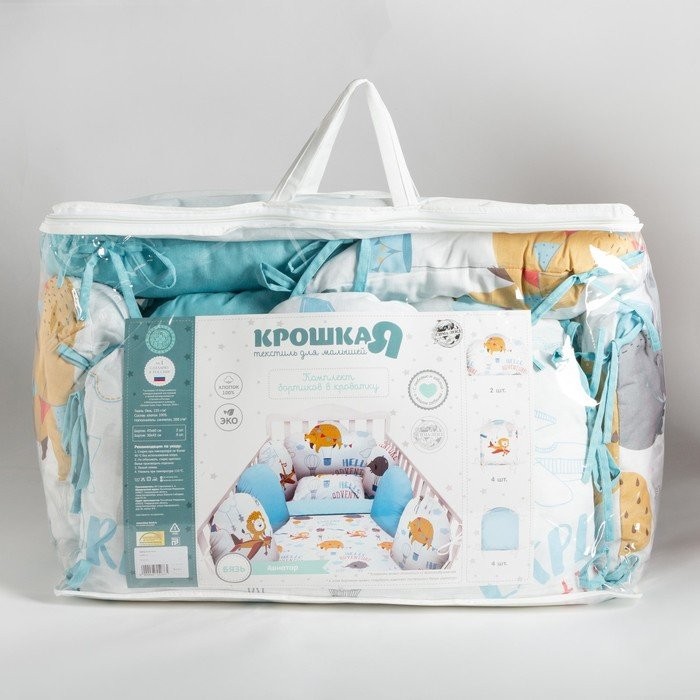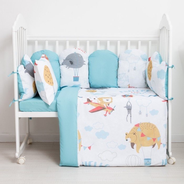 Бортики в кроватку Крошка Я «Авиатор», (60х42см- 2шт, 30х42см- 8шт), 100% хлопок