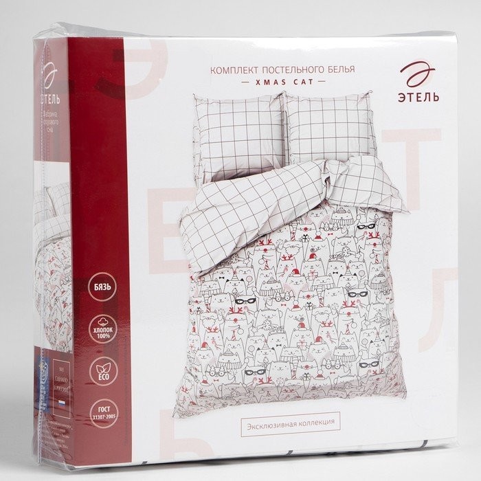 Постельное белье Этель Евро Xmas cat 200*217 см, 240*220 см, 70*70 см — 2 шт