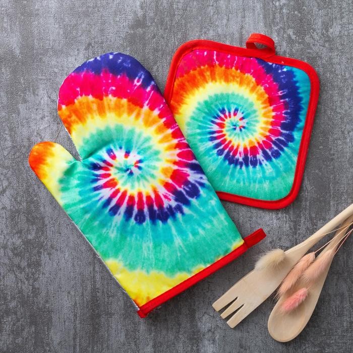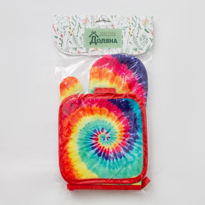 Кухонный набор Доляна «Радуга» прихватка 17×17 см, рукав 26×16 см, 100% п/э