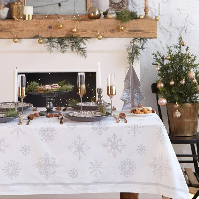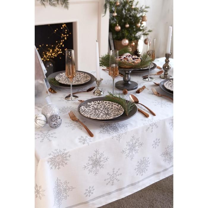 Скатерть Этель «Серебряные снежинки» 149х110см, 100%хл, 190г/м2