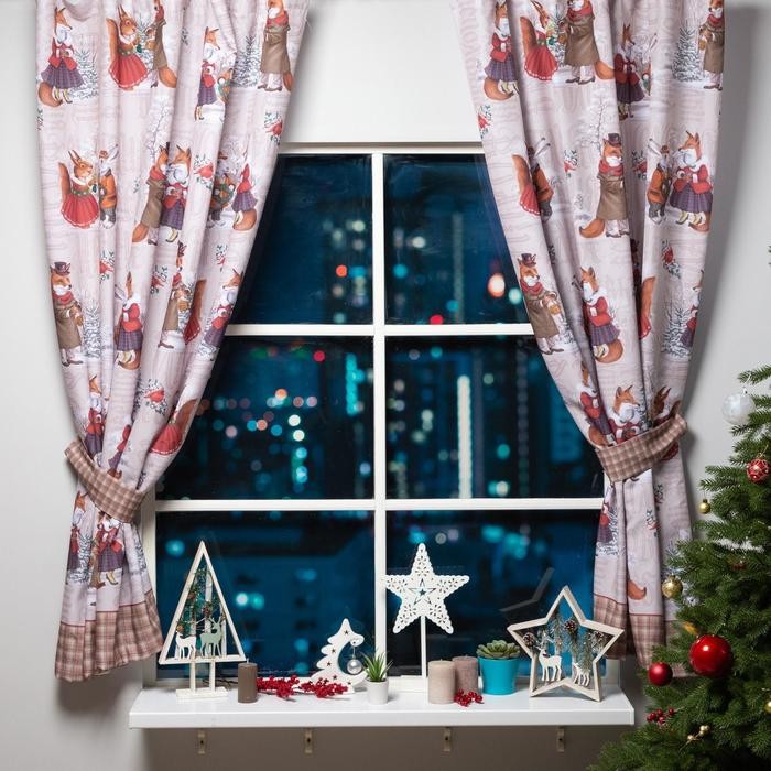 Комплект штор д/кухни с подхватами «Winter holidays» 145х180см-2 шт., габардин
