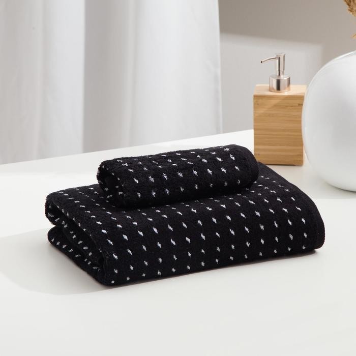 Полотенце махровое Этель ЧБ «Пунктир», пестроткань, 30×60 см