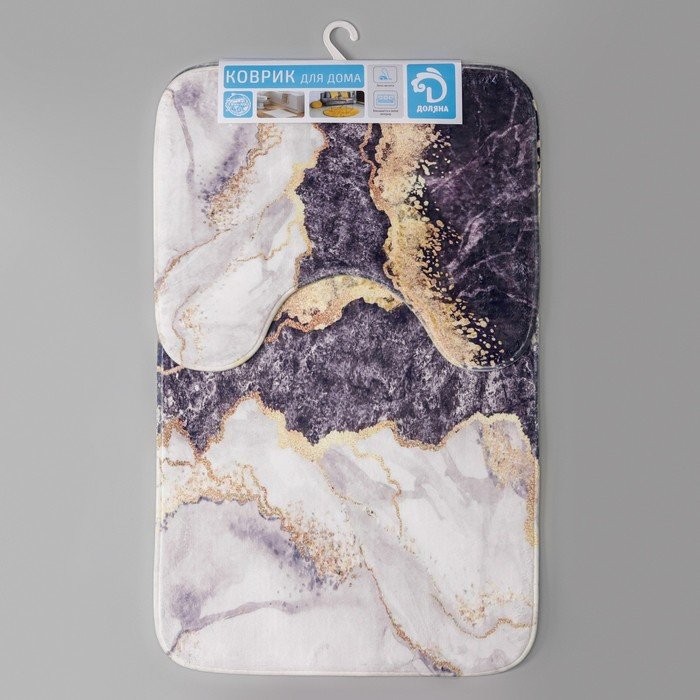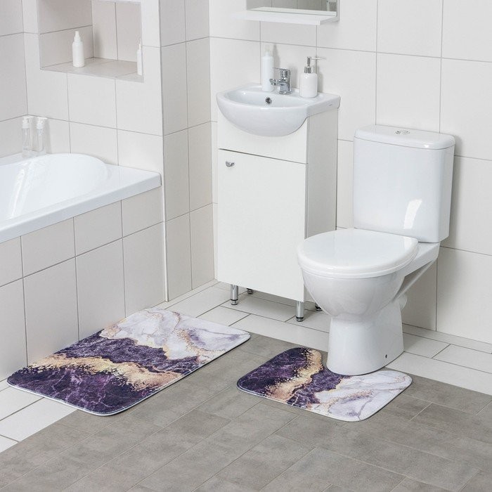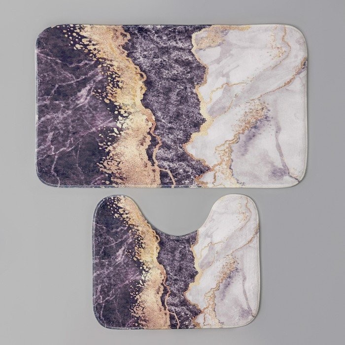 Набор ковриков для ванны и туалета Доляна «Мрамор», 2 шт: 79×50, 50×39 см