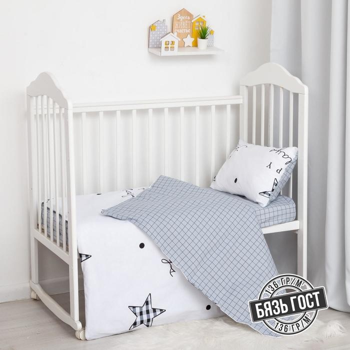 Постельное бельё детское Крошка Я «Звёзды», 147×112 см, 60×120 + 20 см, 40×60 см
