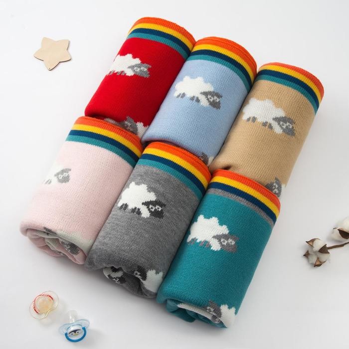 Плед вязаный Крошка Я «Овечки» цв. бежевый, 80*100 см, 100% хлопок