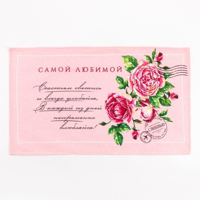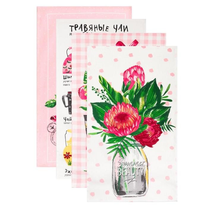 Набор кухонных полотенец Доляна «Самой любимой», 35х60см-4шт, 100% хл