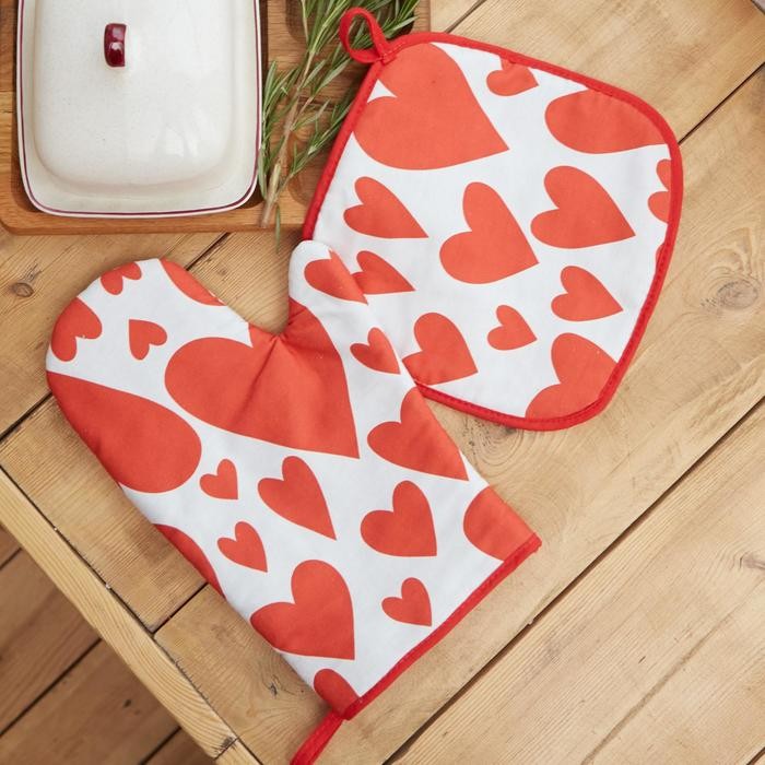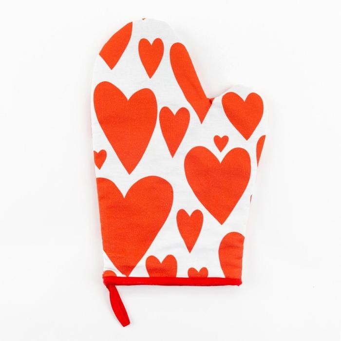 Варежка-прихватка «Этель» Red hearts 20х27см,100% х/л, ватин 250г/м2 (двухсторонняя)