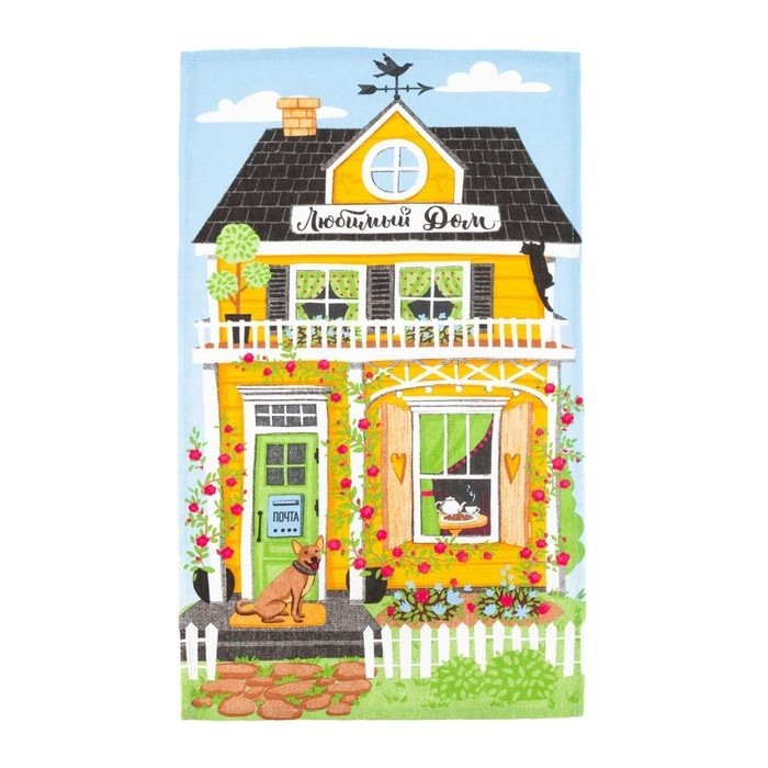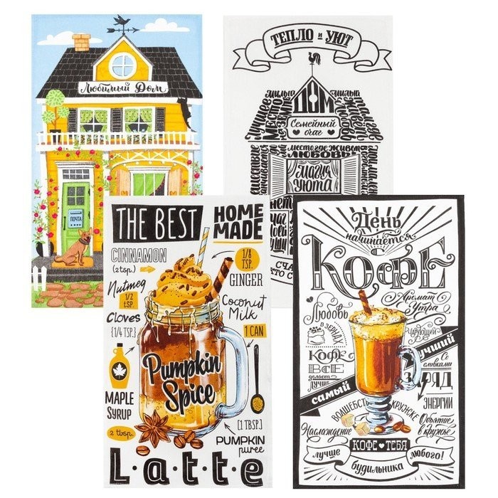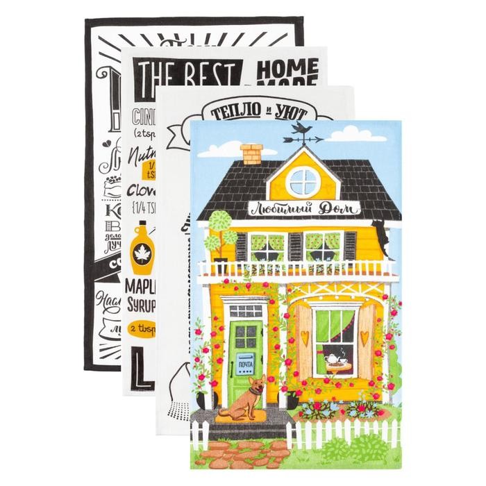 Набор кухонных полотенец Доляна «Любимый дом», 35х60см-4шт, 100% хл