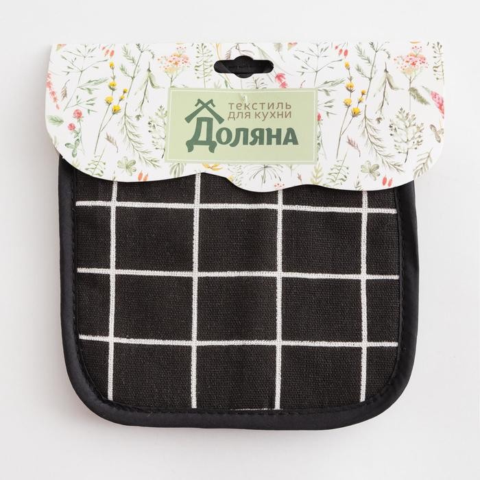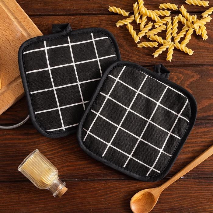 Кухонный набор (2 предмета) Доляна «Клетка», цвет черный, прихватка 17×17 см — 2 шт, 100% п/э