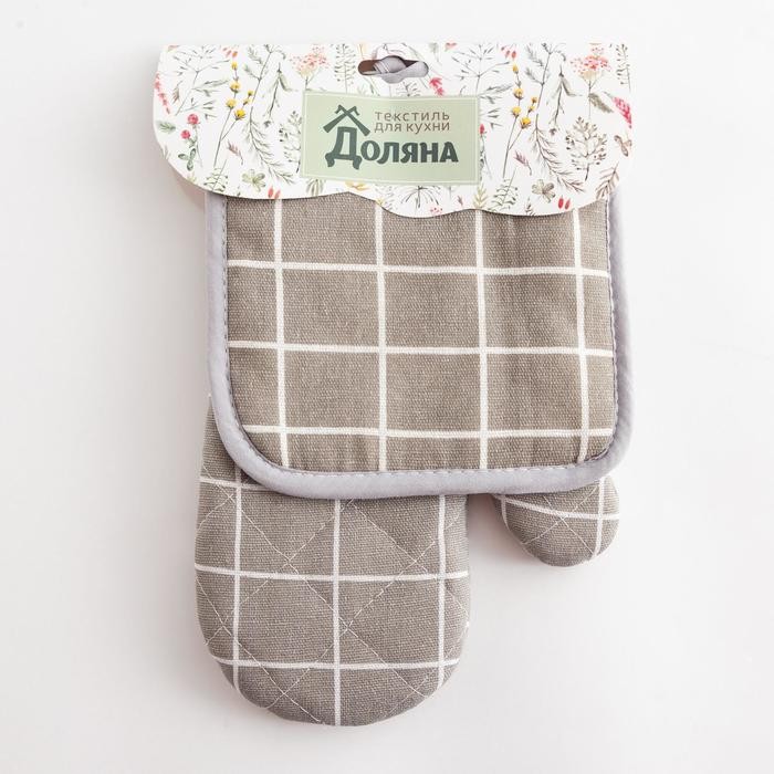 Кухонный набор Доляна «Клетка» цв.серый, прихватка 17*17 см, рукавица 26*16 см,100% п/э