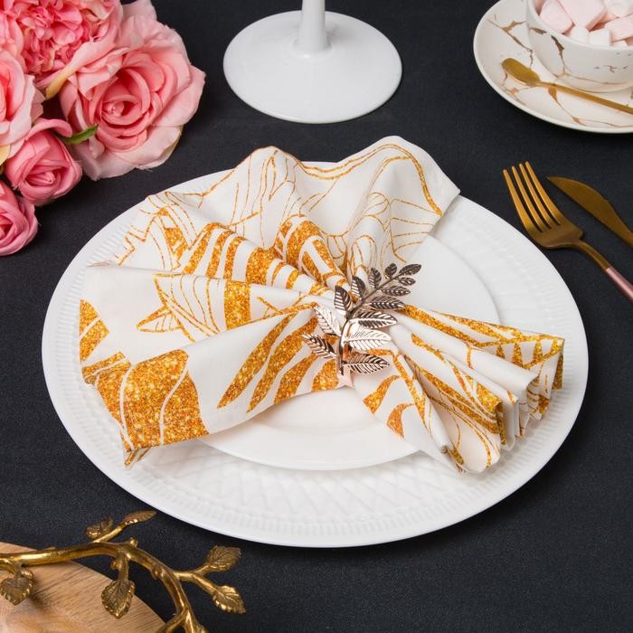 Набор салфеток с декорат. кольцами «Gold» 46х46см — 4 шт, 100% хл, саржа 190гр/м2